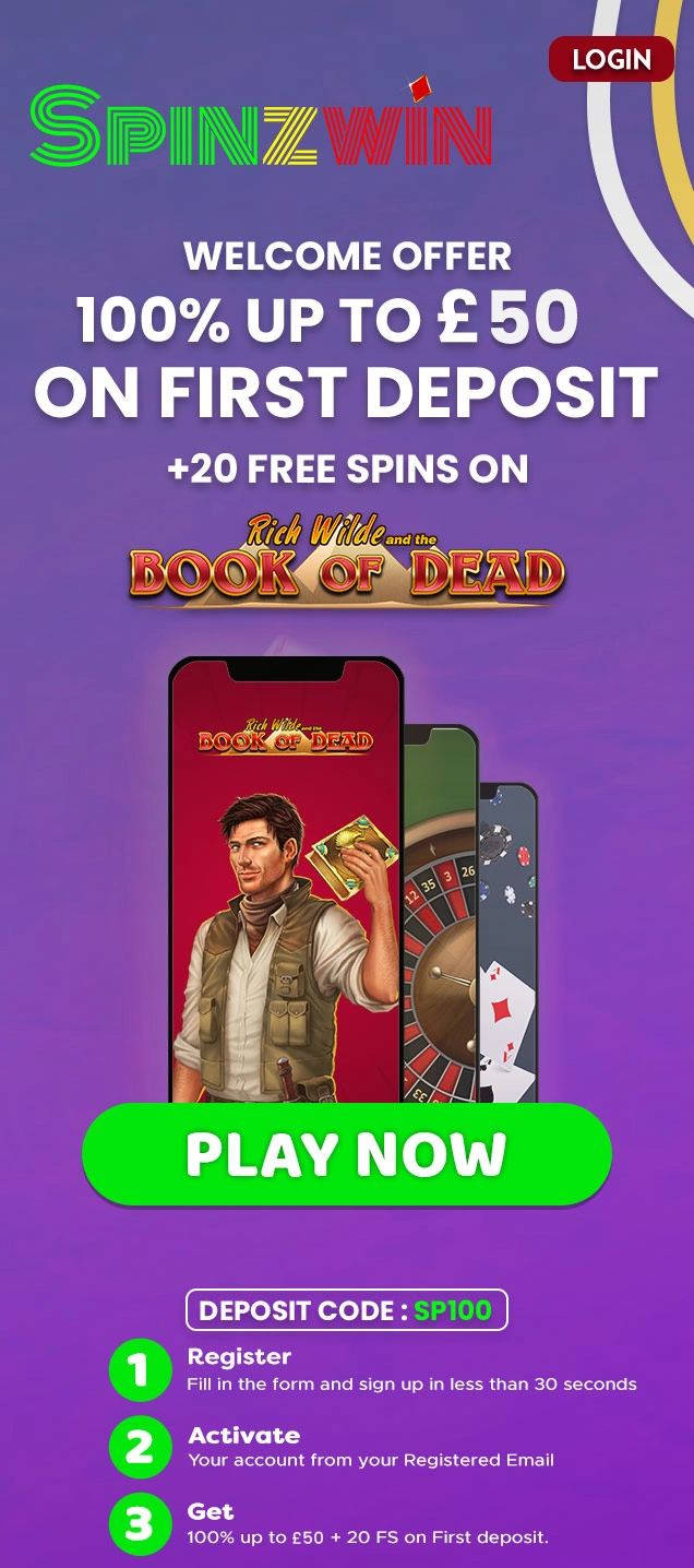 • Enjoy 100% up to £50 + 20 Free Spins on Book of Dead slot on your first deposit using deposit code "SP100".